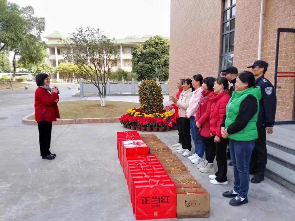 祥龙归海辞旧岁,灵蛇舞春贺新年。1月29日,农历乙巳年正月初一,广州理工学院白云校区内,红灯高挂,年桔增色,鲜花添香,一派祥和喜庆的节日气象。上午十点,学校工会办公室主任彭洁,受董事会、学校党委行政委托,看望慰问春节期间仍然坚守在校园的安保、宿管、保洁等一线在岗值班人员,向他们送上学校的关怀,送上新春的祝福。