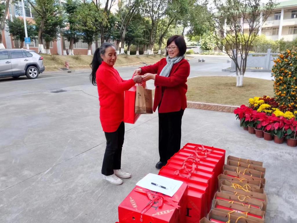 彭洁主任代表学校董事会、党委行政,向值守人员过去一年为学校发展付出的辛勤劳动表示感谢,鼓励大家在新的一年,继续发扬勇于担当、乐于吃苦、甘于奉献的精神,为学校本科教学合格评估,为学校高质量发展做出新的贡献。随后,她将慰问品逐一发放到值守人员手中,并向大家致以节日的问候。